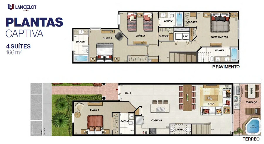Casas com 4 Suítes, com 166m²