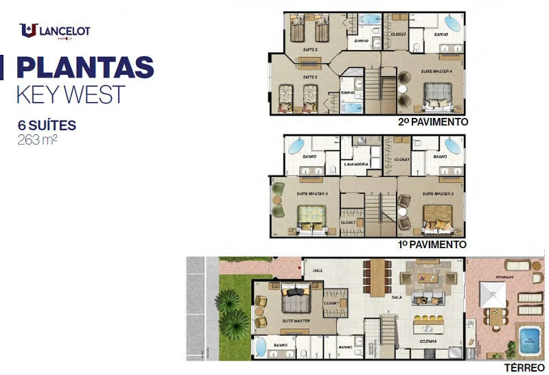 Casas com 6 Suítes, com 263m²
